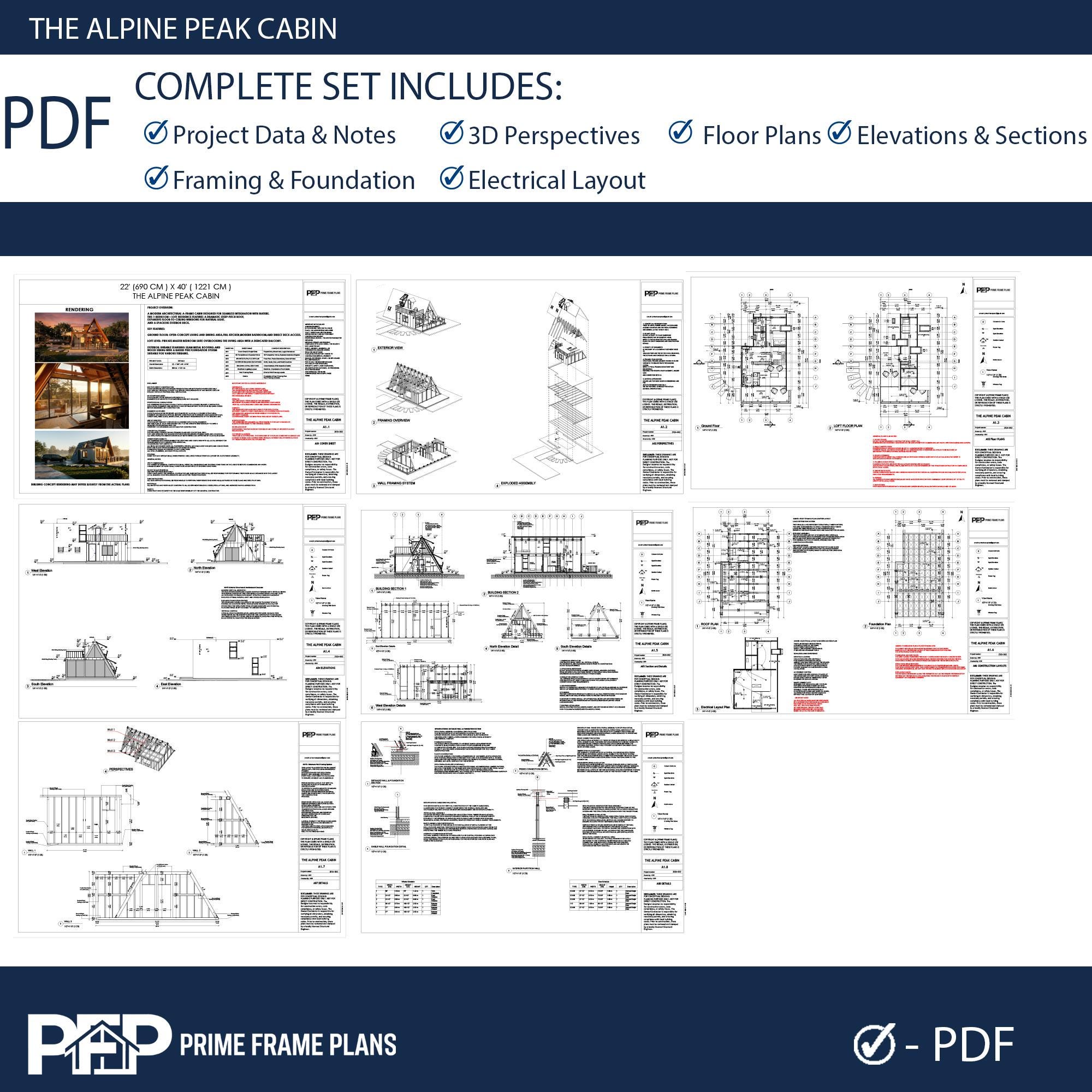 ⚠️ PLEASE NOTE: THIS IS THE "PDF CONCEPT SET" ONLY ⚠️ This package is designed for inspiration, preliminary planning, and visualizing your dream cabin. Looking for the PRO FULL SET with editable CAD (.DWG) files and a Material List for your contractor? You can find the complete PRO package in our Etsy shop! Build your dream getaway with "THE ALPINE PEAK CABIN" architectural plans! This listing is for a digital PDF ONLY plan set for a stunning Modern A-Frame Cabin measuring 22' x 40'. Whether you are looking to build a profitable Airbnb rental, a vacation home, or an off-grid retreat, this design combines iconic style with cost-effective engineering. ***PROJECT SPECIFICATIONS: • Name: The Alpine Peak Cabin • Dimensions: 22' x 40' (approx. 6.9m x 12.2m) • Layout: 1 Bedroom + Spacious Sleeping Loft • Foundation: Raised Pier Foundation (Ideal for uneven terrain & flood protection) • Ceiling: Vaulted / Cathedral Ceiling with Panoramic Glass Facade • Units: Plans include both Imperial (Feet/Inches) and Metric (Meters/CM) dimensions. *** WHAT IS INCLUDED IN THIS PDF SET? You will receive high-resolution digital PDF files immediately after purchase: ARCHITECTURAL PDF SET (Print-Ready on 24"x36" / A1): • A01: Cover Sheet, Project Data & 3D Renderings • A02: 3D Perspectives & Exploded Structural Views • A03: Architectural Floor Plans (Ground & Loft) with Dimensions • A04: Exterior Elevations (North, South, East, West) • A05: Building Sections & Wall Assembly Details • A06: Construction Layouts & Foundation Plan • A07: Wall Framing Plans (Stud Layouts) • A08: Detailed Sections (Foundation to Roof connections) • Bonus: Electrical & Lighting Layout Plan included! *** IMPORTANT NOTES: • Format: Digital Download (PDF ONLY). No physical product will be shipped. • NO CAD / NO MATERIAL LIST: This specific listing does not include DWG files or material estimates. (Please visit our shop profile for the PRO Full Set if your builder requires these). • Engineering: This plan set is for conceptual design purposes only. It does NOT include an architectural or engineering stamp. You are responsible for obtaining all necessary local permits and ensuring compliance with all local building codes. • License: Purchase grants a Single-Use License to build one structure. Resale, distribution, or reproduction of these plans is strictly prohibited. *** Questions? Feel free to message our architectural team!