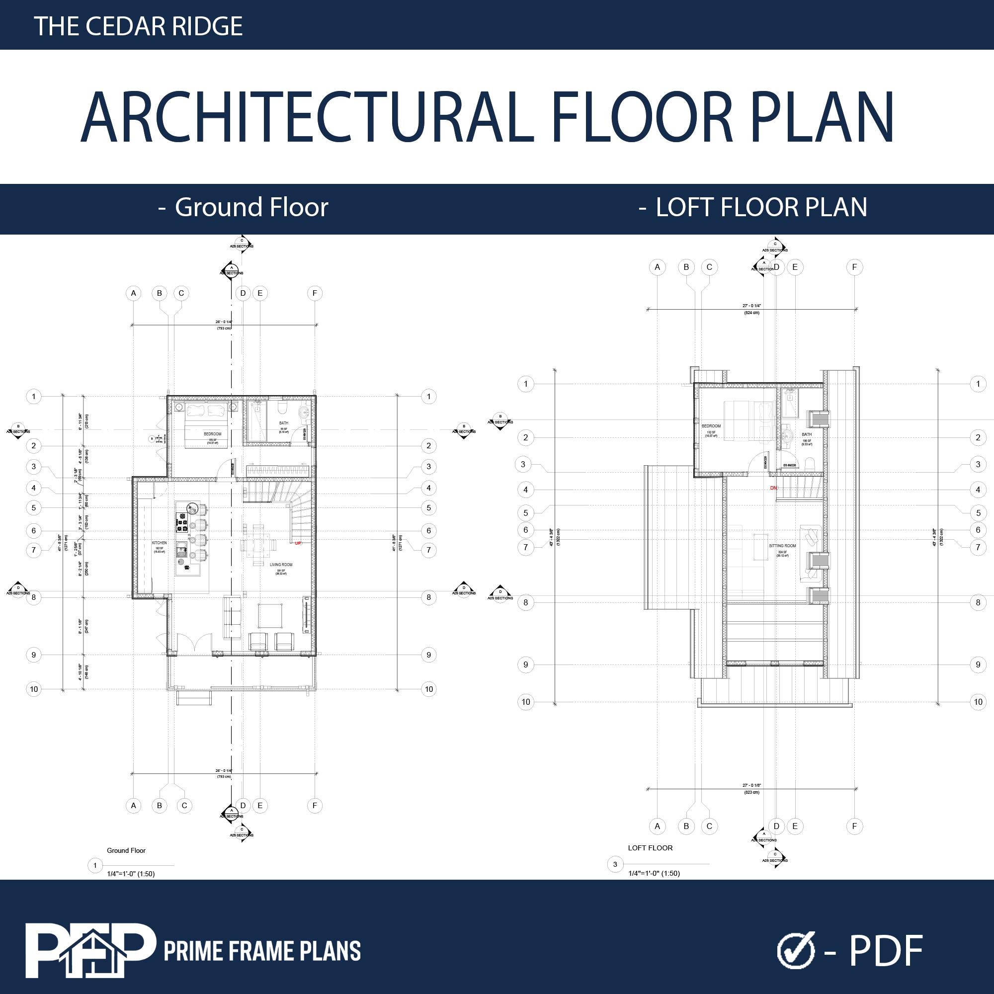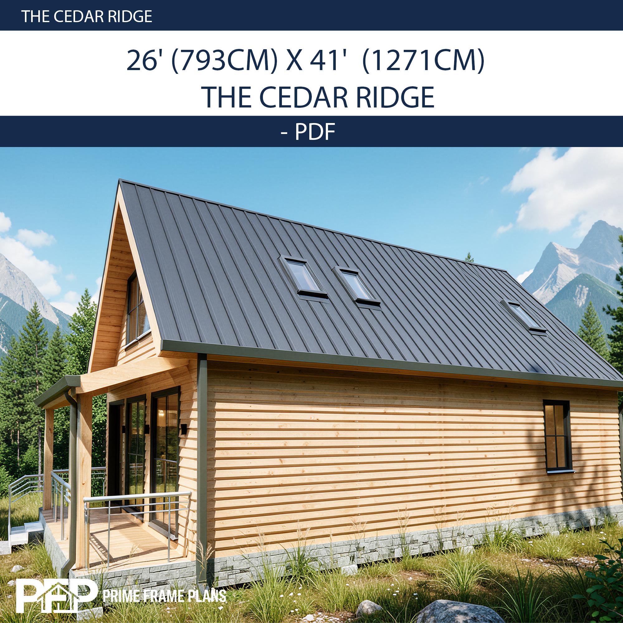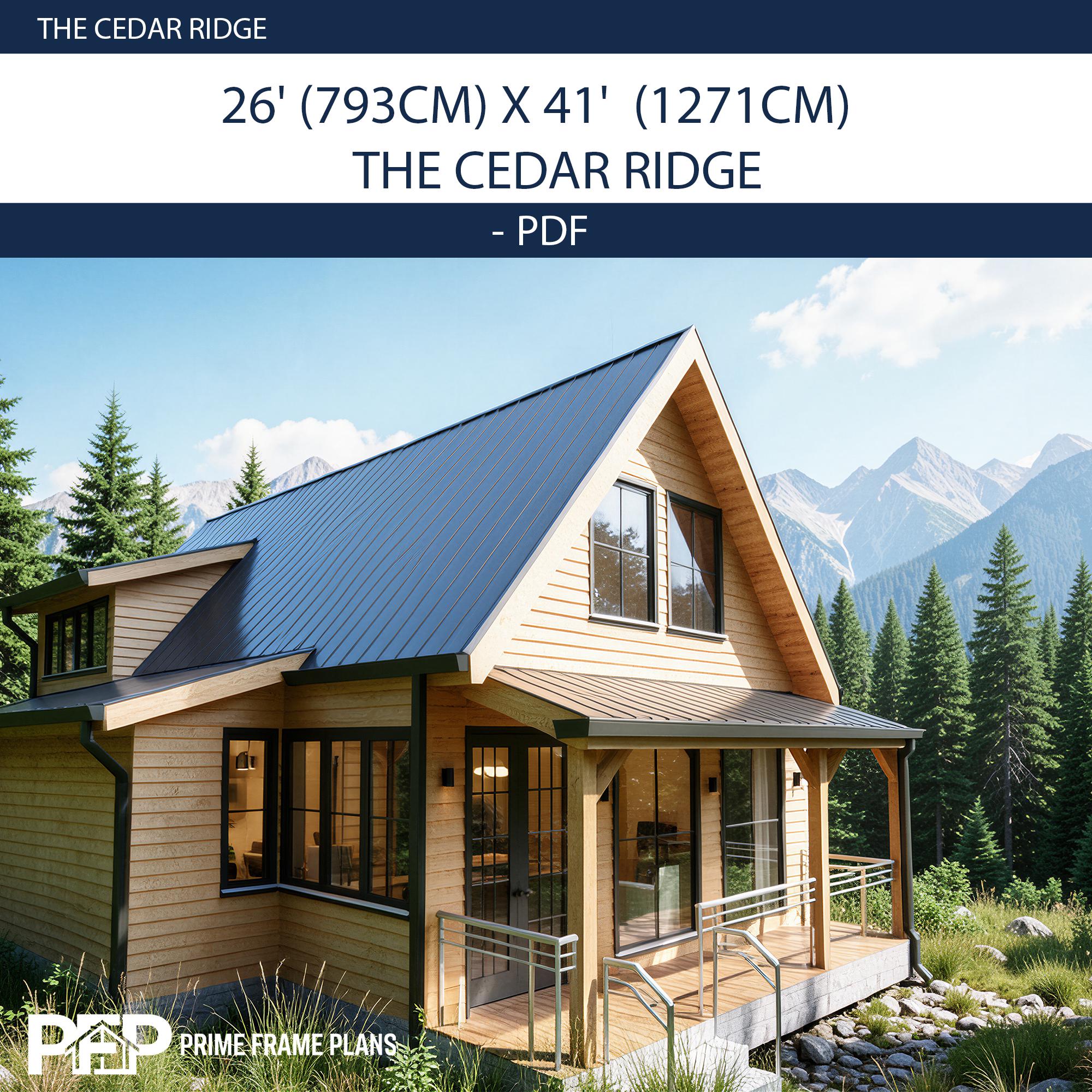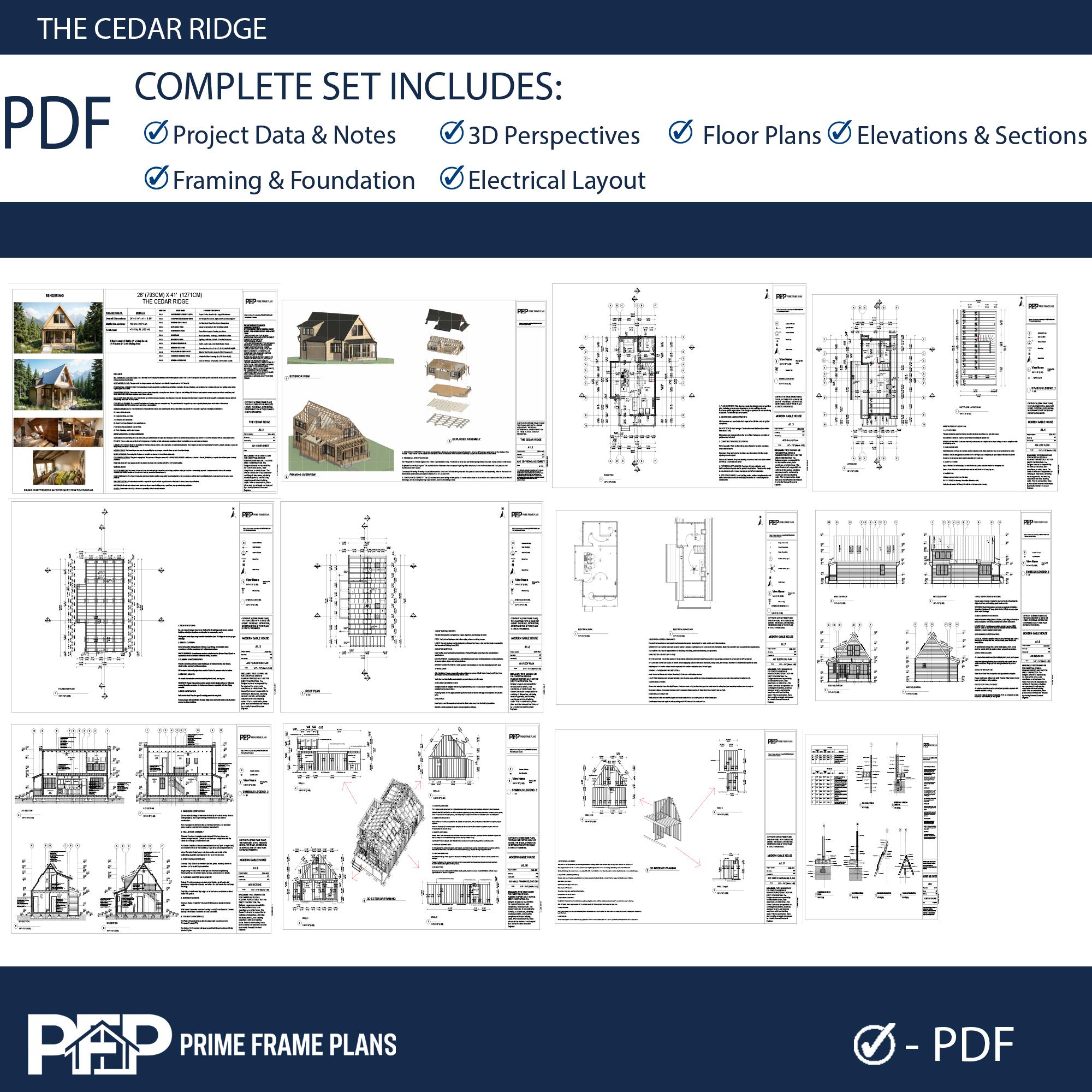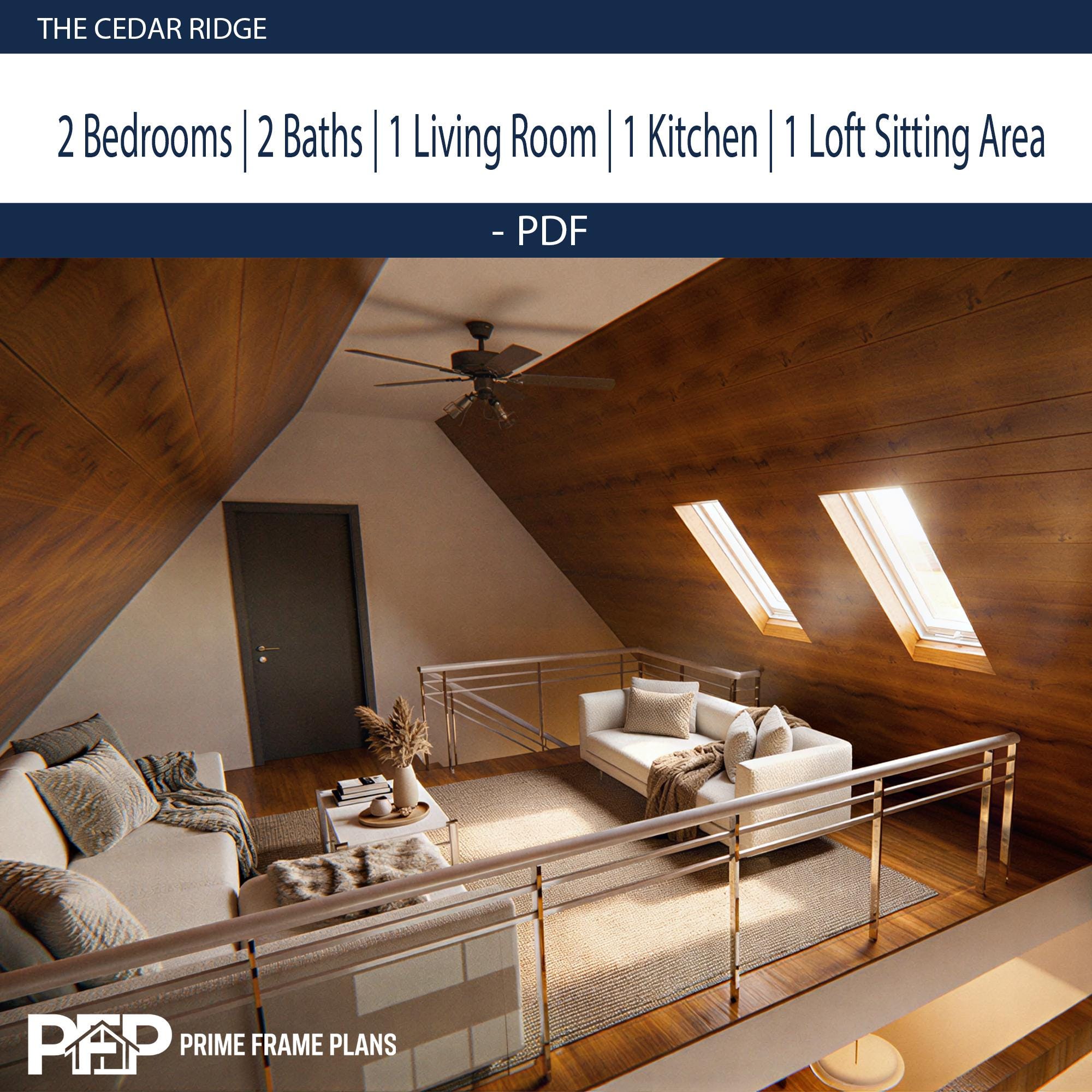 ⚠️ PLEASE NOTE: THIS IS THE "PDF CONCEPT SET" ONLY ⚠️ This package is designed for inspiration, preliminary planning, and visualizing your dream cabin. Looking for the PRO FULL SET with editable CAD (.DWG) files and a Material List for your builder? You can find the complete PRO package by selecting that variation in our shop! PRIME FRAME PLANS presents: The "THE CEDAR RIDGE". Designed for those who appreciate high ceilings and open spaces, this plan blends modern aesthetics with functional living. The design features a stunning Gallery Void above the living room, flooding the space with natural light. The Ground Floor offers a seamless flow with an American-style open kitchen, a spacious living area, and direct access to a large covered Veranda—perfect for outdoor dining. A private bedroom and a full bathroom are also conveniently located on the main level. The Upper Loft serves as a private retreat, featuring a second bedroom, a full bathroom, and a cozy Sitting Area overlooking the living space below. *** DUAL DIMENSIONS INCLUDED: This plan set is designed for global use. All floor plans and elevations utilize both Imperial (Feet & Inches) and Metric (Centimeters) measurements. IMPORTANT: These plans are for conceptual design purposes. They MUST be reviewed by a locally licensed engineer to ensure compliance with your local building codes and soil conditions. ________________________________________ *** DESIGN SUMMARY • Overall Dimensions: 26' x 41' (7.9m x 12.7m) • Total Area: ~765 Sq. Ft. (100 m²) • Bedrooms: 2 (1 on Ground Floor + 1 on Loft Floor) • Bathrooms: 2 (1 on Ground Floor + 1 on Loft Floor) • Key Features: High Ceiling (Gallery Void), Open Kitchen, Large Front Veranda, Loft Sitting Area. • Foundation: Concrete Foundation (Adaptable to site). ________________________________________ *** WHAT IS INCLUDED IN THIS PDF SET? This download includes High-Resolution PDF sheets (Ready to print on 24"x36" / A1). COMPLETE PDF PLAN SET (12 SHEETS): • A1.1: Cover Sheet & Project Data • A1.2: 3D Exterior & Framing Views (Assembly Diagram) • A1.3: Ground Floor Plan (Dimensions & Layout) • A1.4: Loft Floor Plan (Stairs & Railing Details) • A1.5: Foundation Plan • A1.6: Roof Plan (Drainage & Geometry) • A1.7: Electrical Plan (Lights, Switches & Outlets) • A1.8: Exterior Elevations (North, South, East, West) • A1.9: Building Sections (Vertical Heights & Insulation) • A1.10: Wall Framing Elevations • A1.11: Partition Framing Plans • A1.12: Door/Window Schedule & Details ________________________________________ *** PLEASE READ BEFORE PURCHASING • Format: Digital Download (PDF ONLY). No physical product will be shipped. • NO CAD / NO MATERIAL LIST: This specific listing does not include editable DWG files or material estimates. (Please select the PRO Full Set variation if your builder requires these). • License: Single-Use License to build one (1) structure. Resale, distribution, or reproduction is strictly prohibited. • Refunds: Due to the digital nature of the product, no refunds are accepted. PRIME FRAME PLANS – Modern Living, Smart Design.