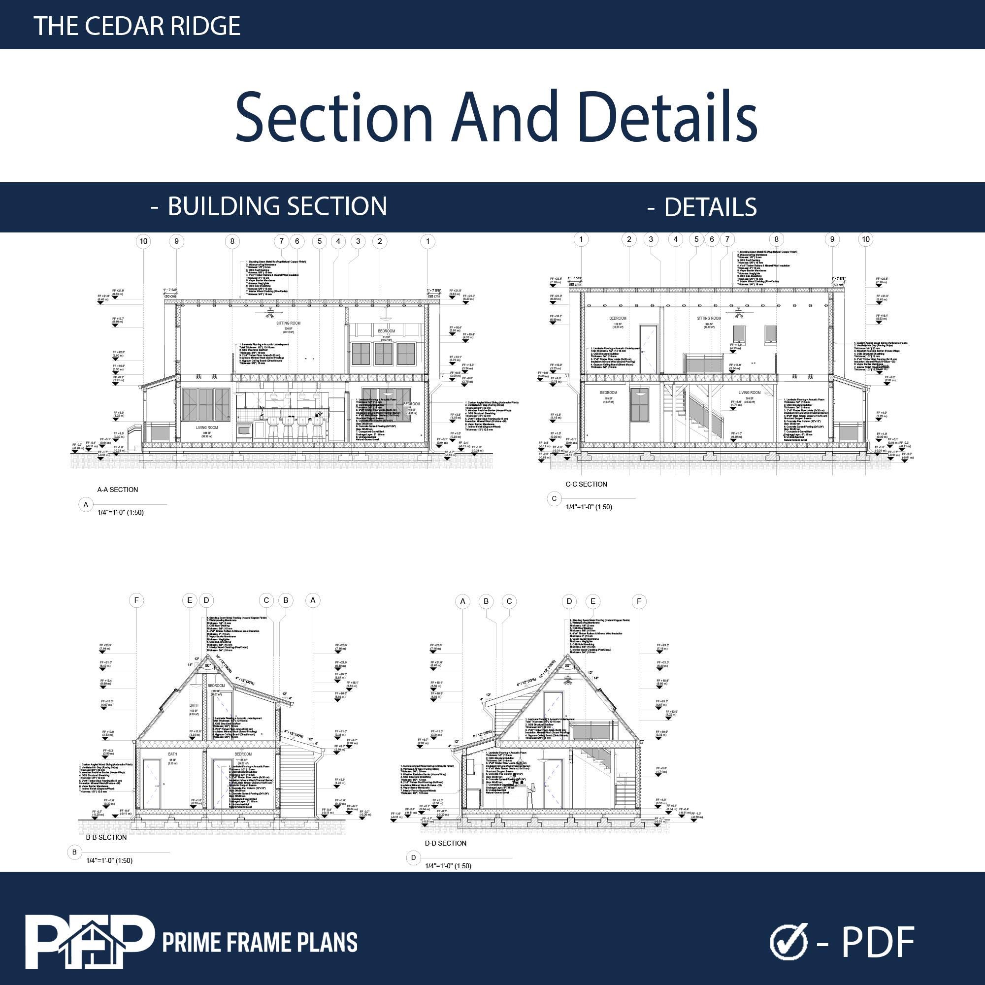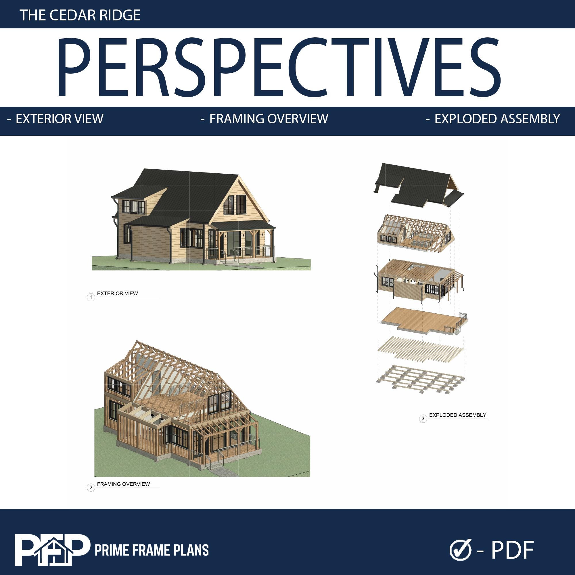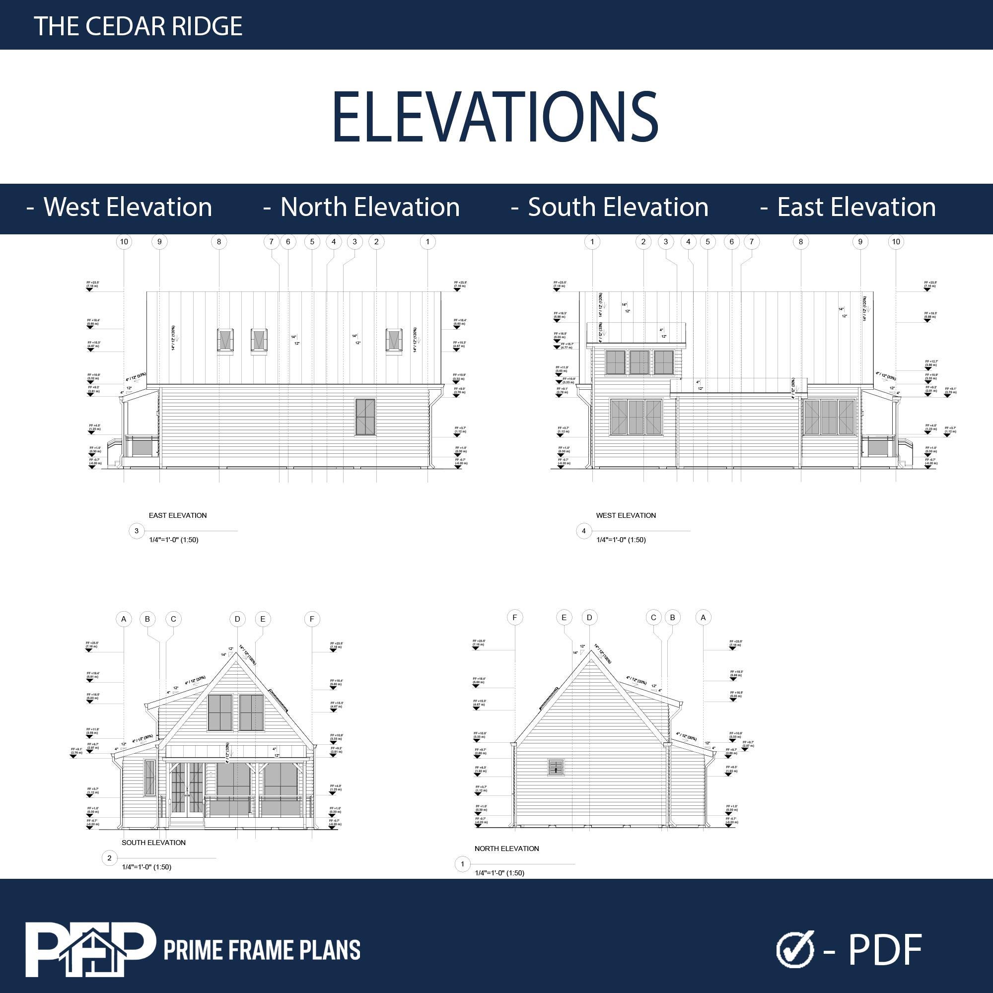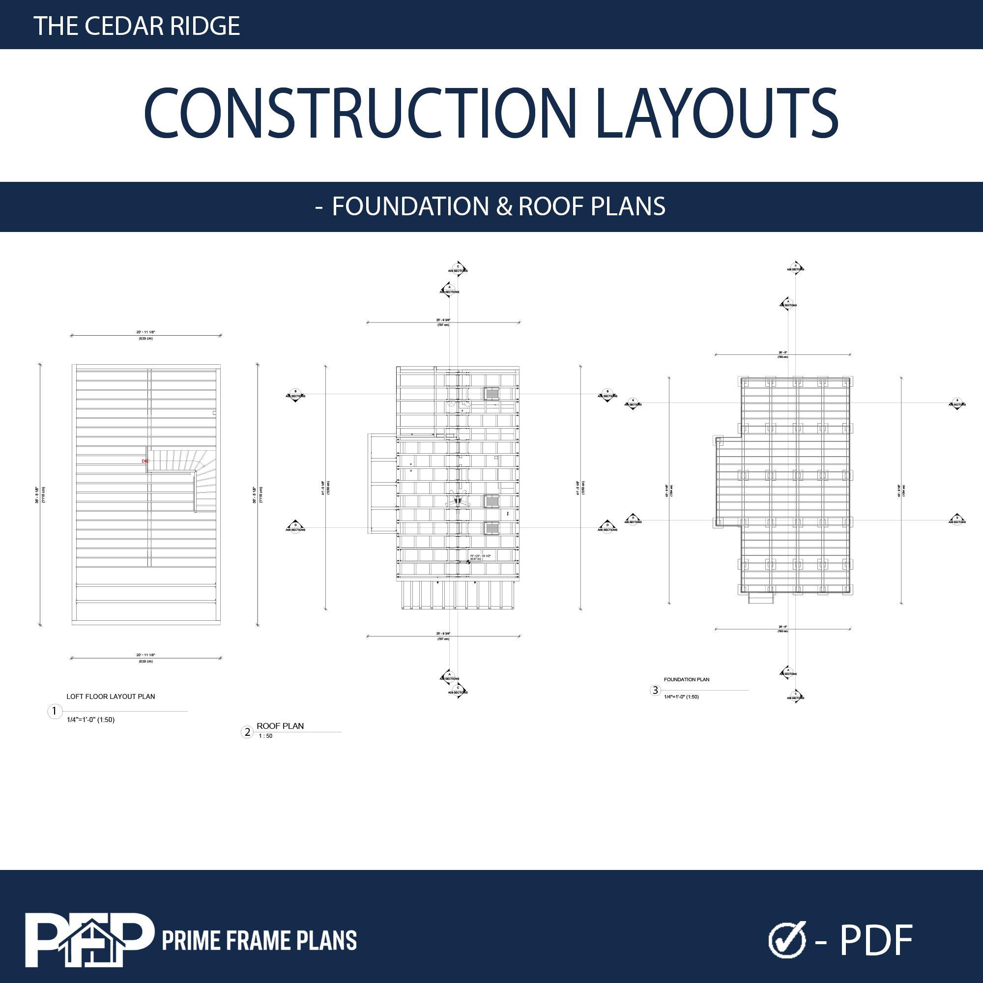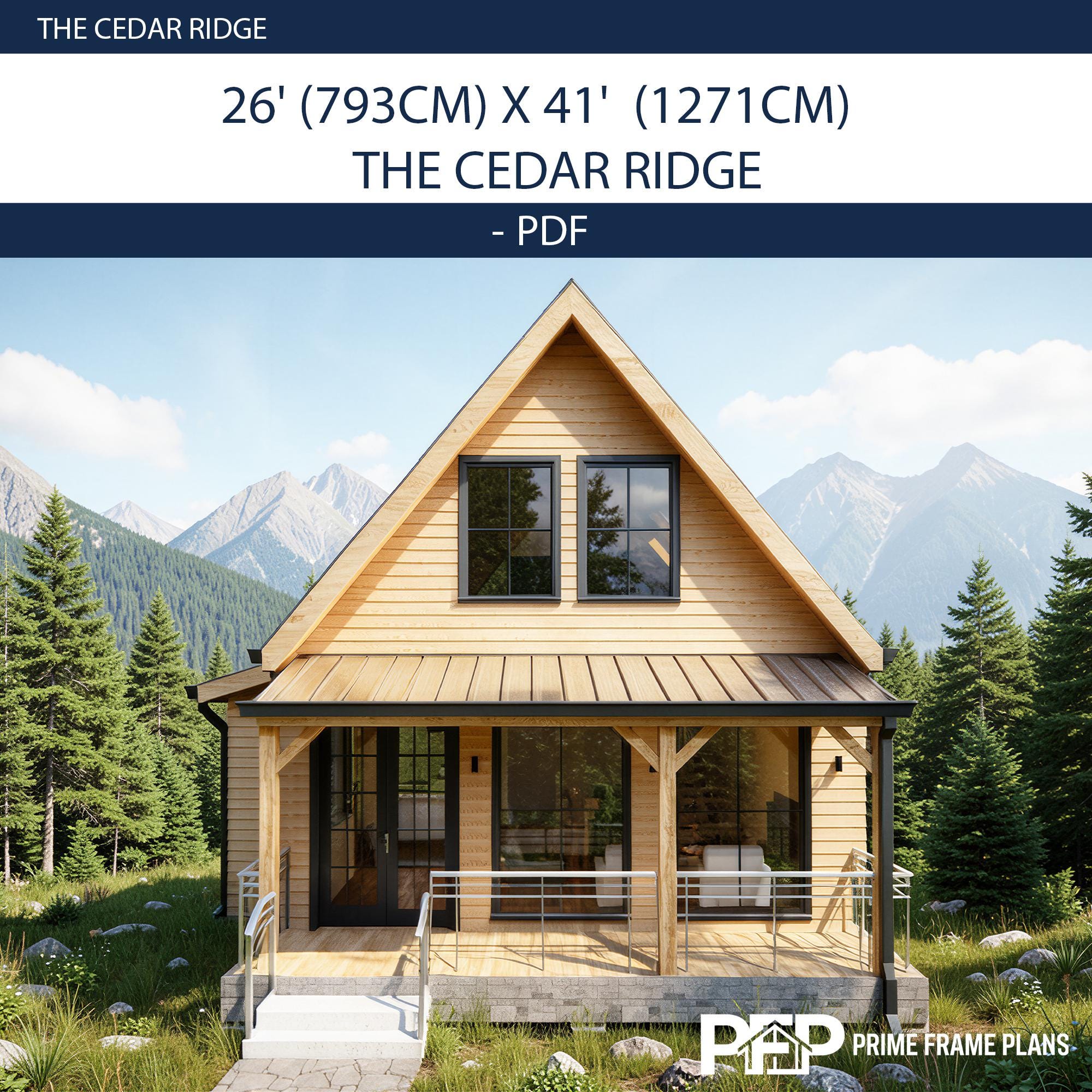 ⚠️ PLEASE NOTE: THIS IS THE "PDF CONCEPT SET" ONLY ⚠️ This package is designed for inspiration, preliminary planning, and visualizing your dream cabin. Looking for the PRO FULL SET with editable CAD (.DWG) files and a Material List for your builder? You can find the complete PRO package by selecting that variation in our shop! PRIME FRAME PLANS presents: The "THE CEDAR RIDGE". Designed for those who appreciate high ceilings and open spaces, this plan blends modern aesthetics with functional living. The design features a stunning Gallery Void above the living room, flooding the space with natural light. The Ground Floor offers a seamless flow with an American-style open kitchen, a spacious living area, and direct access to a large covered Veranda—perfect for outdoor dining. A private bedroom and a full bathroom are also conveniently located on the main level. The Upper Loft serves as a private retreat, featuring a second bedroom, a full bathroom, and a cozy Sitting Area overlooking the living space below. *** DUAL DIMENSIONS INCLUDED: This plan set is designed for global use. All floor plans and elevations utilize both Imperial (Feet & Inches) and Metric (Centimeters) measurements. IMPORTANT: These plans are for conceptual design purposes. They MUST be reviewed by a locally licensed engineer to ensure compliance with your local building codes and soil conditions. ________________________________________ *** DESIGN SUMMARY • Overall Dimensions: 26' x 41' (7.9m x 12.7m) • Total Area: ~765 Sq. Ft. (100 m²) • Bedrooms: 2 (1 on Ground Floor + 1 on Loft Floor) • Bathrooms: 2 (1 on Ground Floor + 1 on Loft Floor) • Key Features: High Ceiling (Gallery Void), Open Kitchen, Large Front Veranda, Loft Sitting Area. • Foundation: Concrete Foundation (Adaptable to site). ________________________________________ *** WHAT IS INCLUDED IN THIS PDF SET? This download includes High-Resolution PDF sheets (Ready to print on 24"x36" / A1). COMPLETE PDF PLAN SET (12 SHEETS): • A1.1: Cover Sheet & Project Data • A1.2: 3D Exterior & Framing Views (Assembly Diagram) • A1.3: Ground Floor Plan (Dimensions & Layout) • A1.4: Loft Floor Plan (Stairs & Railing Details) • A1.5: Foundation Plan • A1.6: Roof Plan (Drainage & Geometry) • A1.7: Electrical Plan (Lights, Switches & Outlets) • A1.8: Exterior Elevations (North, South, East, West) • A1.9: Building Sections (Vertical Heights & Insulation) • A1.10: Wall Framing Elevations • A1.11: Partition Framing Plans • A1.12: Door/Window Schedule & Details ________________________________________ *** PLEASE READ BEFORE PURCHASING • Format: Digital Download (PDF ONLY). No physical product will be shipped. • NO CAD / NO MATERIAL LIST: This specific listing does not include editable DWG files or material estimates. (Please select the PRO Full Set variation if your builder requires these). • License: Single-Use License to build one (1) structure. Resale, distribution, or reproduction is strictly prohibited. • Refunds: Due to the digital nature of the product, no refunds are accepted. PRIME FRAME PLANS – Modern Living, Smart Design.