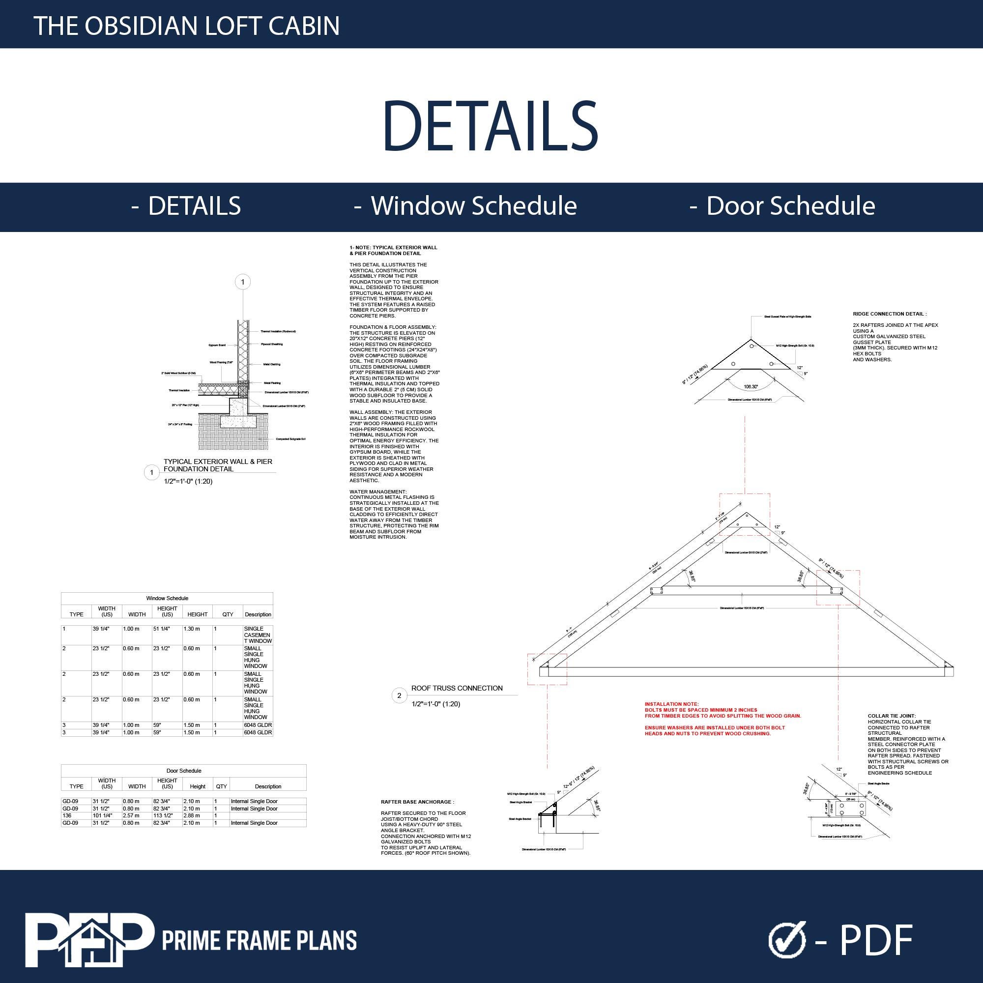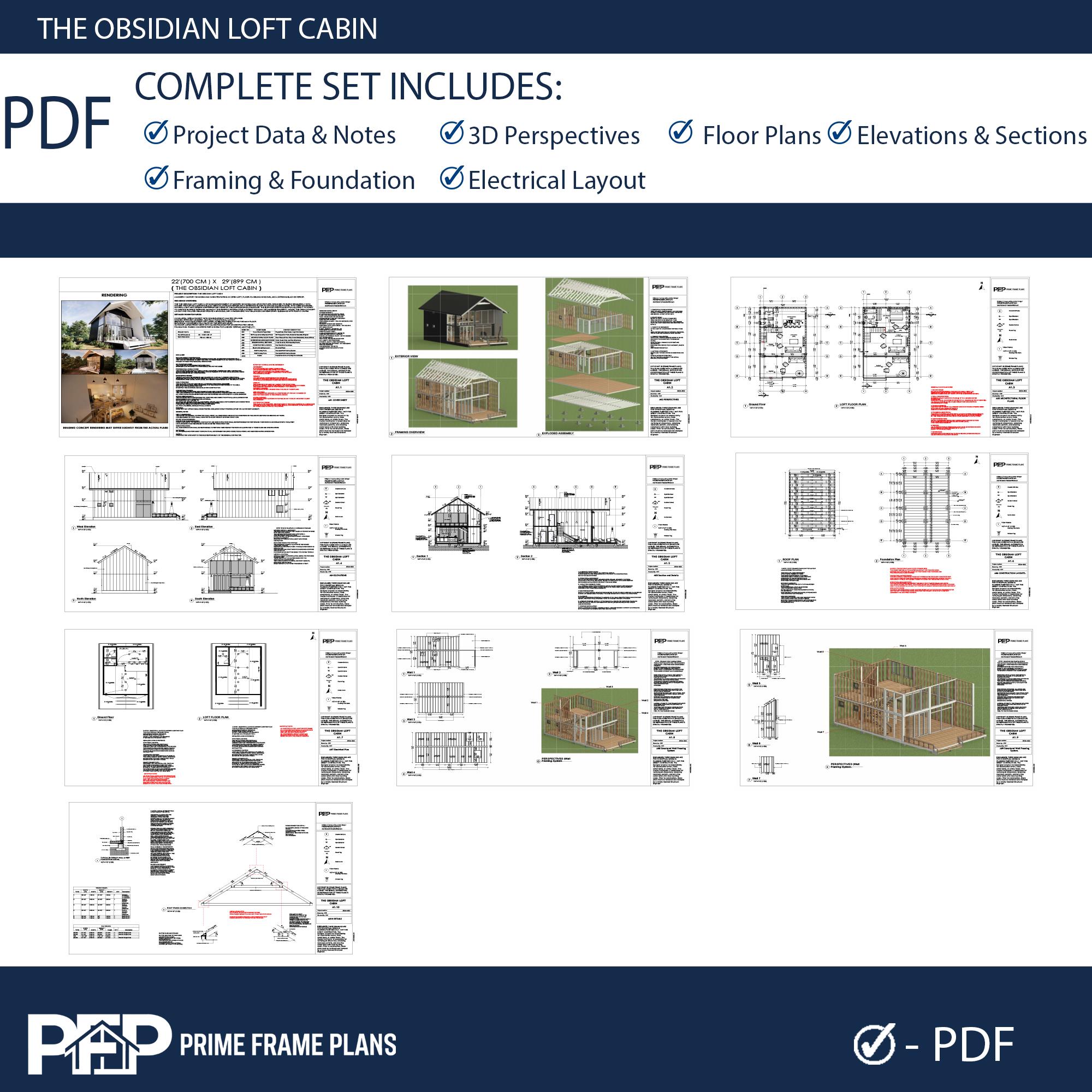 COMPLETE ARCHITECTURAL PDF SET (10 Sheets): • A01: Cover Sheet, Project Data & 3D Renderings • A02: 3D Exploded Views & Framing Perspectives • A03: Detailed Floor Plans (Ground & Loft) with Dimensions • A04: 4 Exterior Elevations (North, South, East, West) • A05: Building Sections & Wall Assembly Details • A06: Foundation Plan (Pier Layout) & Roof Framing Plan • A07: Electrical & Lighting Plan (Switch & Outlet Layouts) • A08-A09: Structural Wall Framing Schematics (Stud Layouts) • A10: Critical Construction Details (Truss Connections, Pier Details)