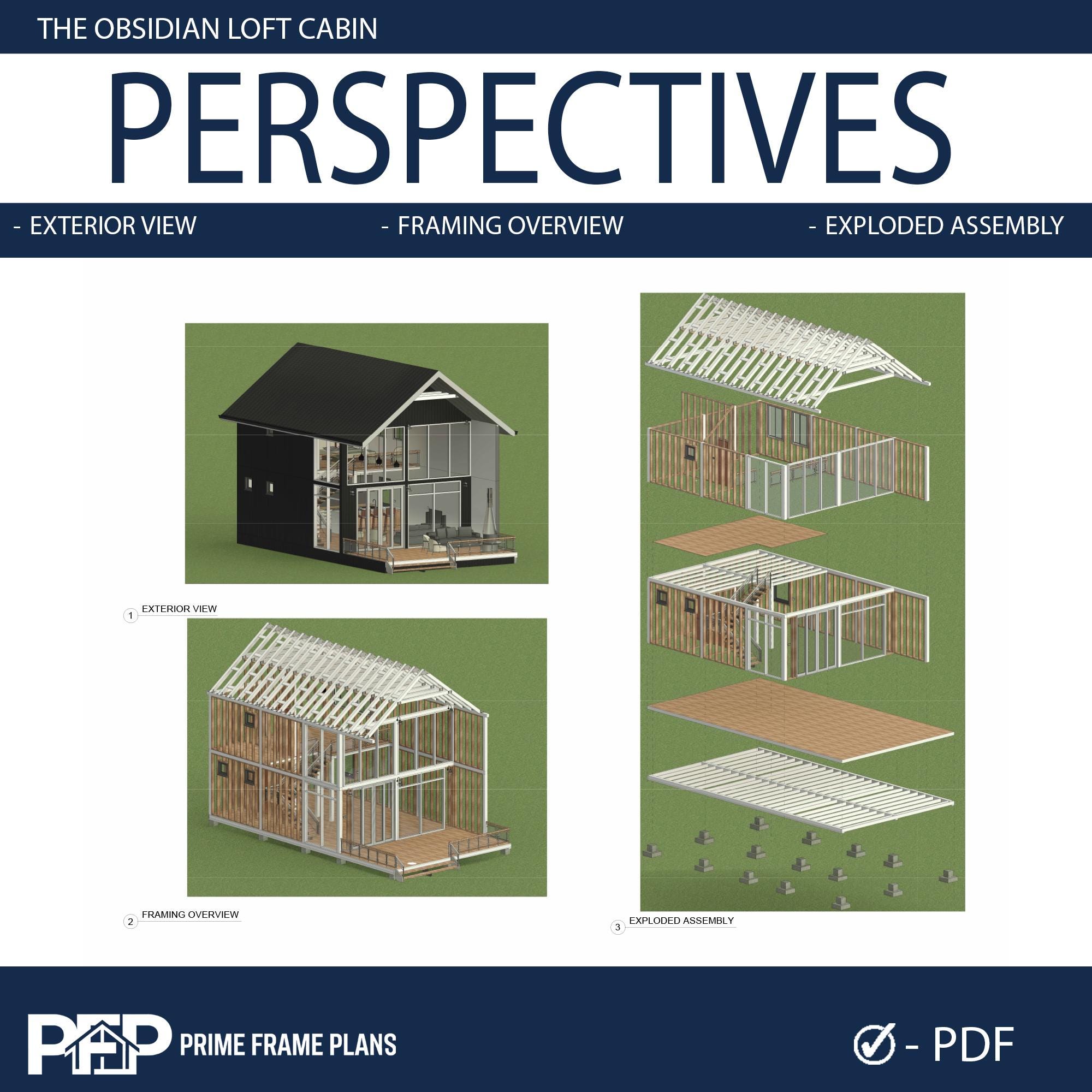 PRIME FRAME PLANS presents: The Obsidian Loft Cabin. Meet the ultimate modern retreat. The Obsidian Loft Cabin is a stunning 1.5-story Scandinavian-style home designed for those who demand architectural excellence. Featuring a striking black vertical siding exterior and a massive floor-to-ceiling glass facade, this fully modeled project is perfect for conceptualizing and planning your future build.