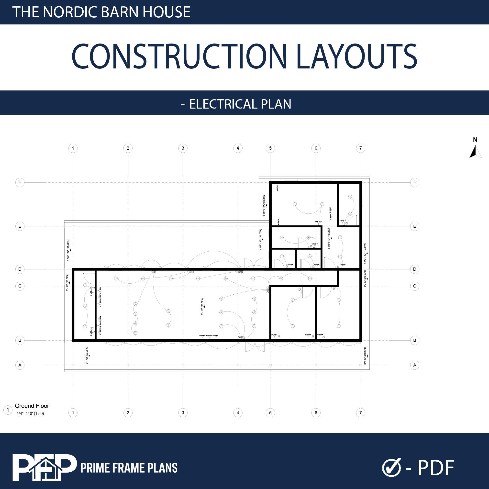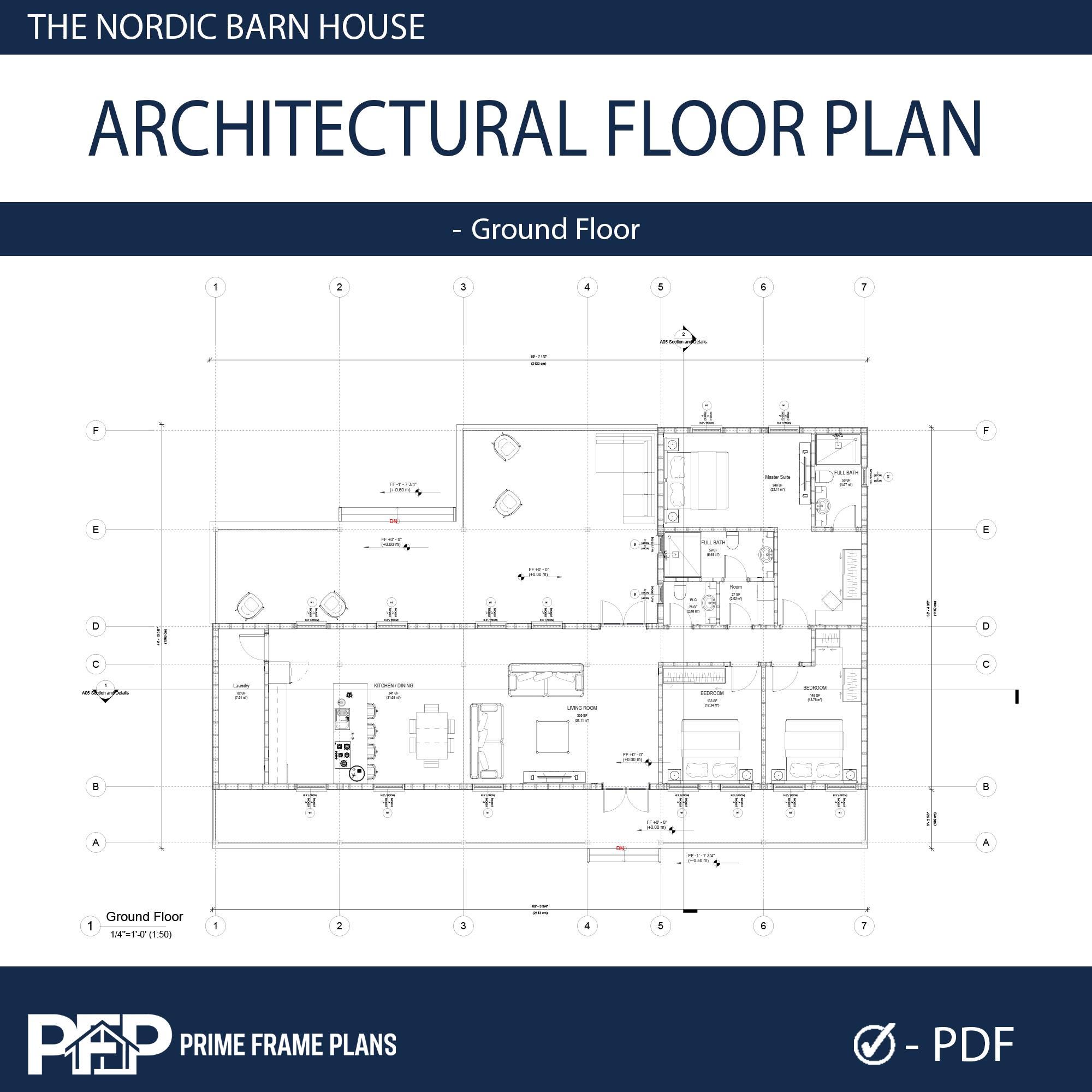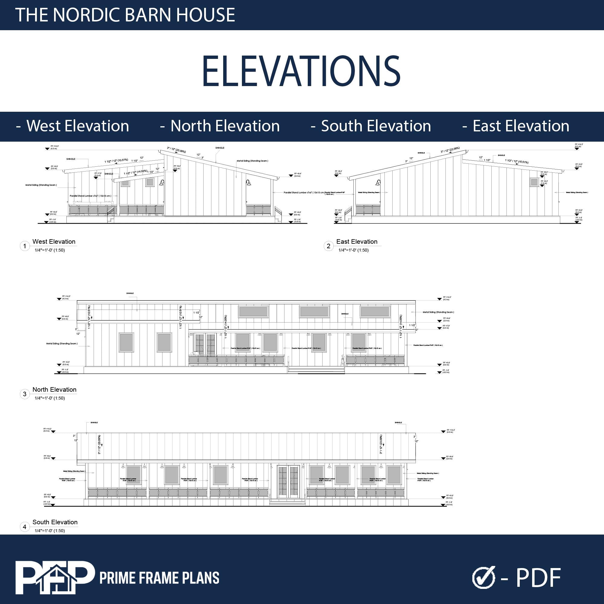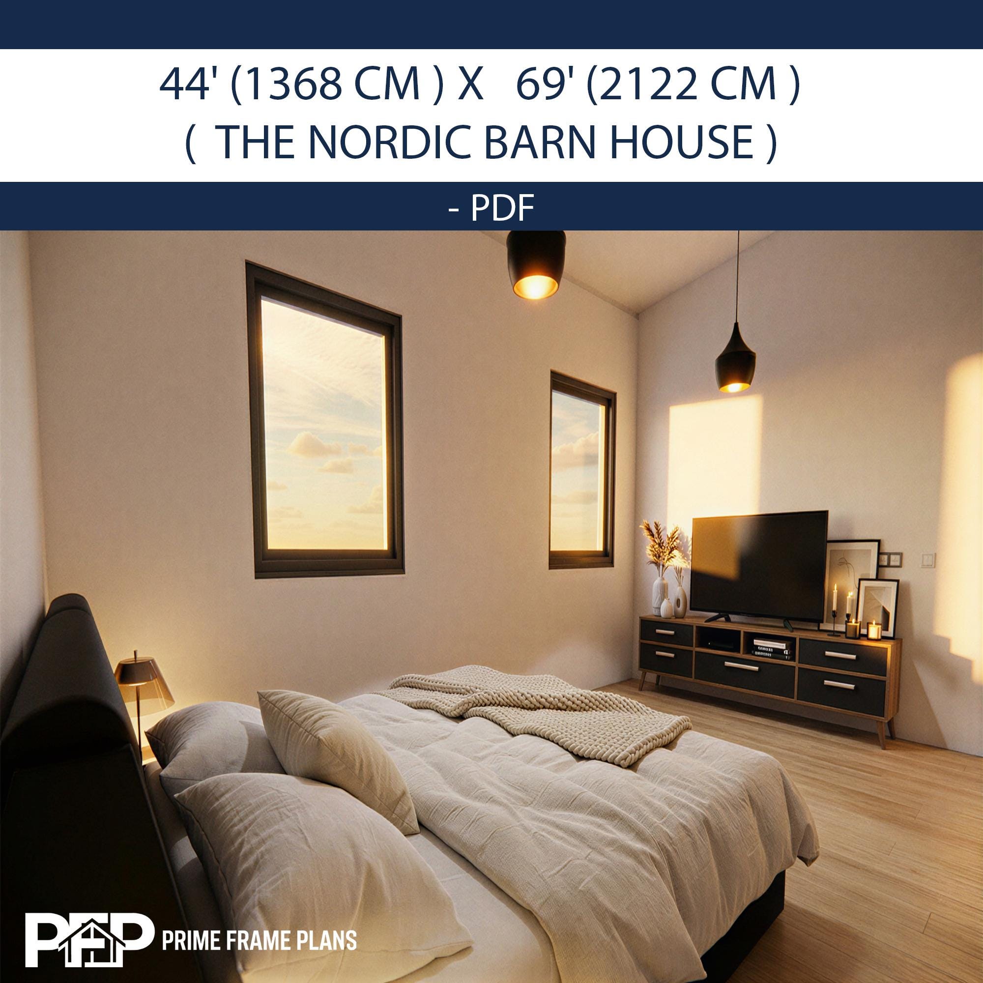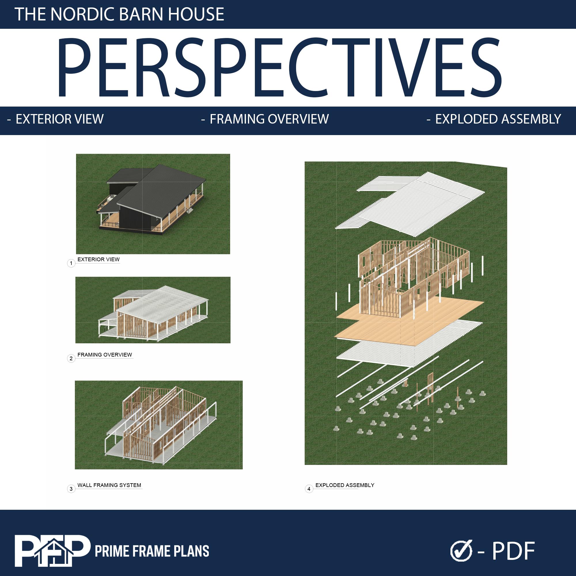 PRIME FRAME PLANS presents: The Nordic Barn House. Inspired by Scandinavian minimalism, this modern barn-style residence offers a perfect blend of luxury and functionality. The design is characterized by its striking shed roof profile, black vertical siding, and an expansive wrap-around veranda that promotes seamless indoor-outdoor living. Inside, you'll find a massive open-concept great room with vaulted ceilings, a gourmet kitchen with a central island, and a private master suite wing. This plan is the ultimate blueprint for a stylish family home or a high-end vacation rental.