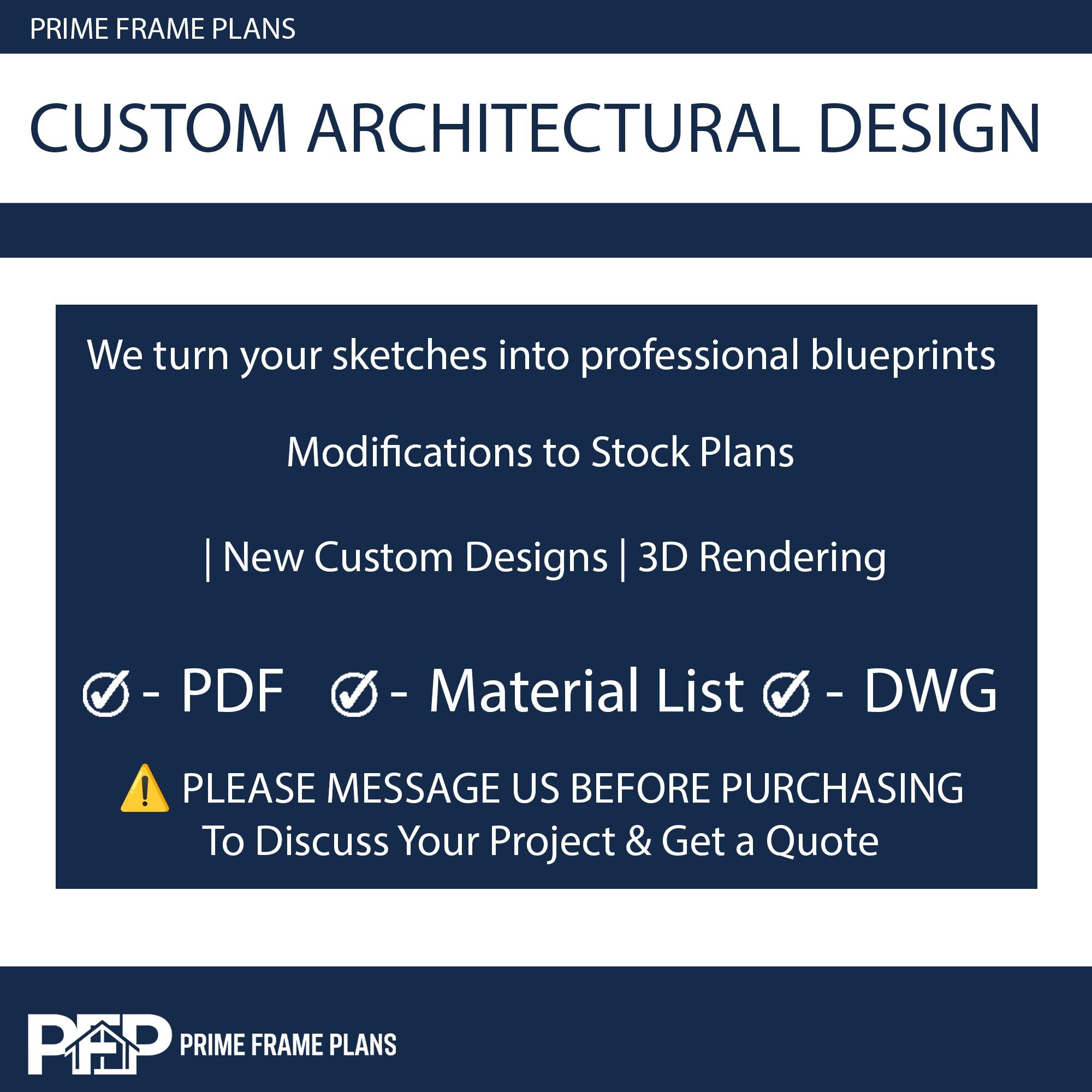 "Sometimes, a pre-made plan isn't enough to capture your specific dream. That’s where our Custom Design Services come in. At Prime Frame Plans, we collaborate with clients worldwide to create one-of-a-kind architectural masterpieces. From the initial sketch to the final 3D photorealistic rendering, we walk you through every step of the design process. Our custom packages include: Full Architectural Set (PDF & DWG) Site-Specific Customization High-End Interior & Exterior Renders Comprehensive Material Lists Your land is unique, and your home should be too. Let’s build the future together."